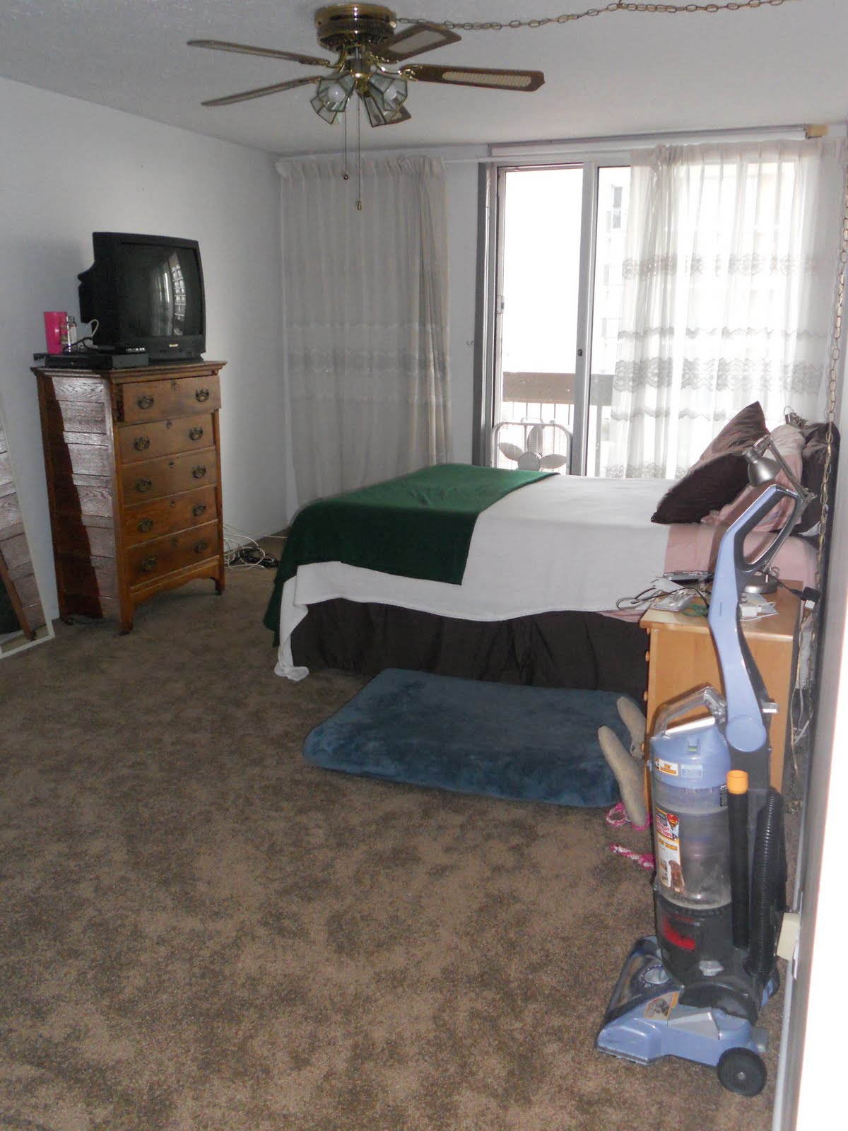 So that was Monday morning. By Monday evening, when we returned from a long day of work, our two bedrooms (and more specifically, the carpet in our two bedrooms) looked like this: